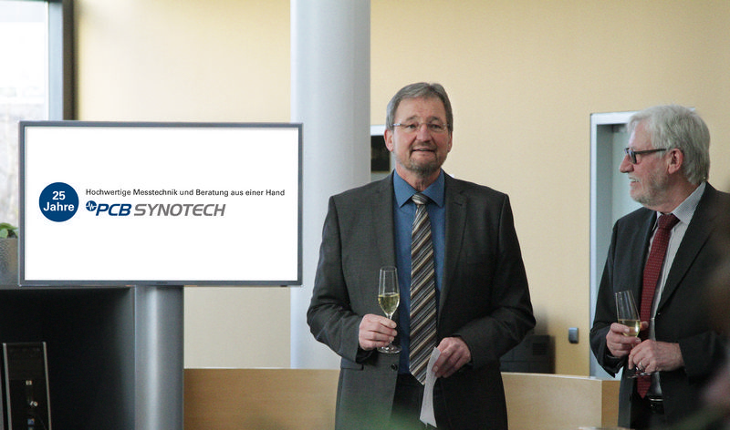 Das Team der PCB Synotech und der Unternehmensgründer fanden am 14. Februar den richtigen Anlass zum Feiern: Vor genau 25 Jahren setzte Dipl.-Ing. Manfred Vieten seine Geschäftsidee in die Tat um und initiierte den Startschuss für sein Unternehmen. Bei einem Glas Sekt trafen sich die Mitarbeiter, der Geschäftsführer Dipl.-Ing./MBA Thomas Ebi gemeinsam mit dem Gründer im Foyer der Firma, um die Entwicklung der letzten Jahre Revue passieren zu lassen.