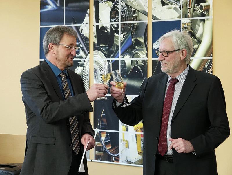 Bei einem gemeinsamen Frühstücksbuffet mit der Belegschaft würdigte Thomas Ebi den Verlauf des kontinuierlich steigenden Geschäftserfolges der vergangenen Jahre, die Vorzüge der nachhaltigen Kundenbindung sowie die breit gefächerte Ausrichtung des Unternehmens. Anschließend beglückwünschte er Manfred Vieten für seine mutige Pionierleistung vor 25 Jahren und überreichte ein Geschenk.