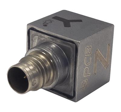 Die triaxialen ICP®-Beschleunigungssensoren der Serie 356A4x bieten standardmäßig TEDS und sind mit drei Empfindlichkeiten mit 10, 50 und 100 mV/g. Die masseisolierten, hermetisch dichten Titangehäuse haben eine Kantenlänge von knapp 10 mm bei einem Gewicht von nur etwa 4 Gramm.