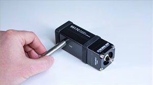 Beide Mikrofone hören dasselbe akustische Signal, das von einem internen Aktuator proportional zu einem Eingangsspannungs-Signal erzeugt und über eine BNC-Buchse eingespeist wird. Durch Vergleichen der Spannungsausgangsignale von Referenz- und Testmikrofon kann die Empfindlichkeit des Testmikrofons berechnet werden. Um die empfindlichen Mikrofonmembranen vor direkten Umgebungseinflüssen zu schützen, ist der Kalibrator so konzipiert, dass das Grid am Mikrofon verbleibt. Dies verringert das Risiko einer Beschädigung und ermöglicht auch die Kalibrierung von Mikrofonen mit nicht entfernbaren Grids. In Verbindung mit dem SmartSine™ 9000A von The Modal Shop können Mikrofone schnell und einfach im Feld und im Labor kalibriert werden.