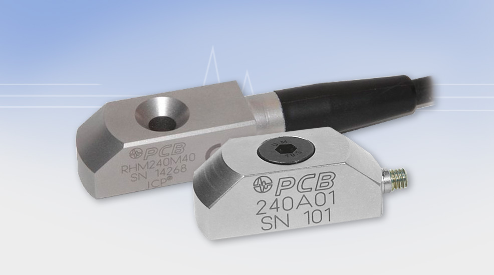 Die Dehnungssensoren der Serie RHM240 sind speziell für den Einsatz in industrieller Umgebung entwickelt worden. Die Sensoren mit ICP/IEPE-Ausgang stehen mit unterschiedlichen Messbereichen zwischen 50 und 300 µε zur Verfügung. Die Montage der Aufnehmer erfolgt über eine zentrale Durchgangsschraube im Kraftnebenschluss abseits des direkten Kraftflusses. Die Stauchung und Streckung im Material wird durch Haftreibung in das Sensorelement übertragen und als elektrisches Signal ausgegeben. Das Modell RHM240M40 besitzt neben einem integriertem Kabel zusätzlich eine Masseisolierung, die das Sensorsignal vor Störungen durch Erdschleifen effektiv schützt.
