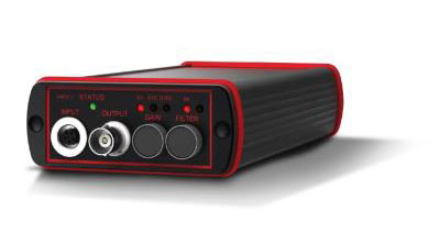 Die Versorgungseinheit verfügt über umschaltbare Verstärkungsfaktoren, einen optionalen Filter und einen Nullpunktabgleich. Zum Lieferumfang des Gerätes gehören ein Steckernetzteil (12 VDC/2 A) sowie zwei Sensoranschlussadapter (Typ Binder).