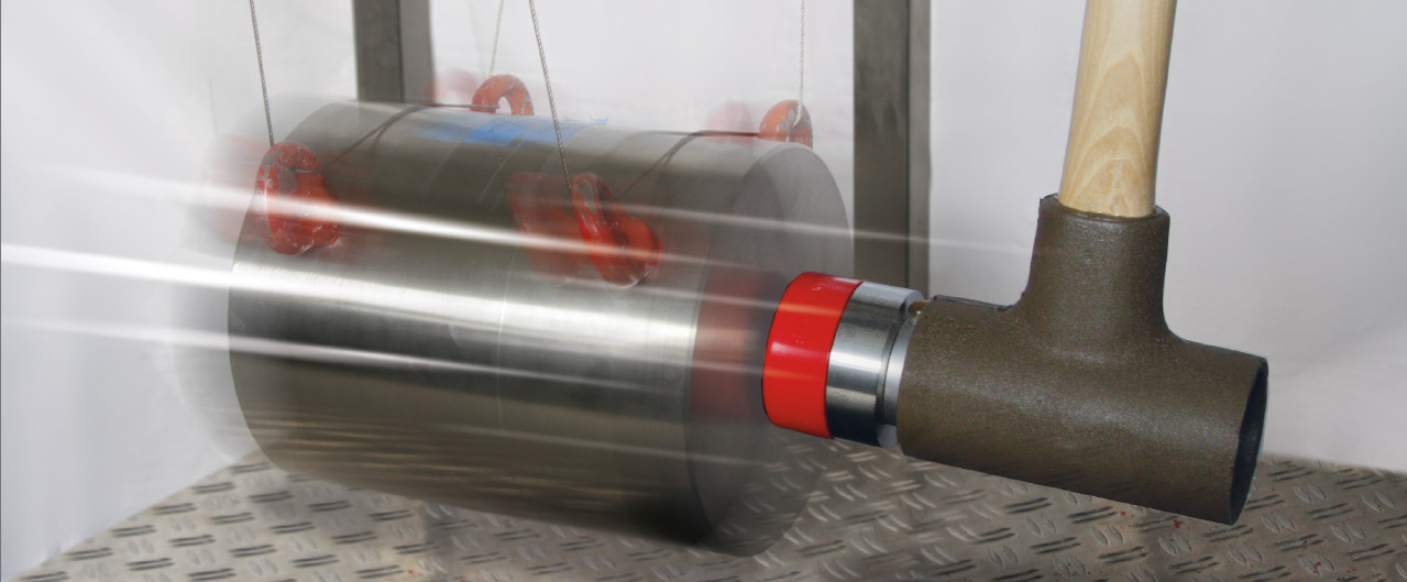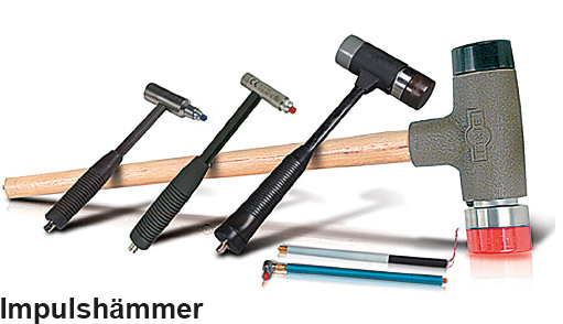 Die Impulsanregung eines Prüflings kann auch mit einem instrumentierten Hammer der Serie 086 von PCB® erfolgen. Die Impulshämmer mit integriertem ICP®-Kraftsensor stehen mit unterschiedlichen Gewichten und Messbereichen zur Verfügung. Auswechselbare Hammerspitzen verschiedener Härtegrade ermöglichen die Anregung unterschiedlicher Frequenzbereiche.